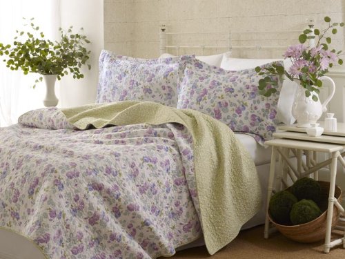 Laura Ashley Cotton Quilt Set includes quilt and two standard shams (one sham with twin size). Quilt is fully reversible.