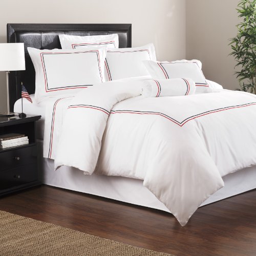 The roxbury park patriot baratto stripe queen size duvet cover set consists of a queen size duvet cover with red (2cm), white (1cm) and navy blue (2cm) stripes at the foot and sides of the top of the bed and standard shams with matching embroidered red, white and blue baratto stripes on all 4 sides.