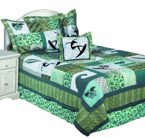 It's time to surf some waves. She will love this beautifully colored pattern, created with appliquéd flowers, waves and surfer girls.