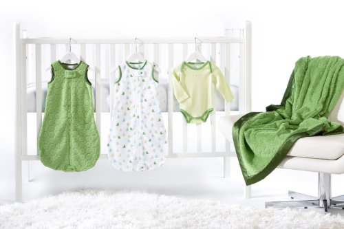 SwaddleDesigns 5 Piece zzZipMe Sack Crib Bedding Set with Cozy Blanket for Parents, Pure Green, 3-6 Months