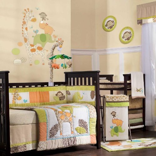 - The Wildlife 4 Piece Baby bedding includes: quilt, dust ruffle, fitted sheet and diaper stacker
