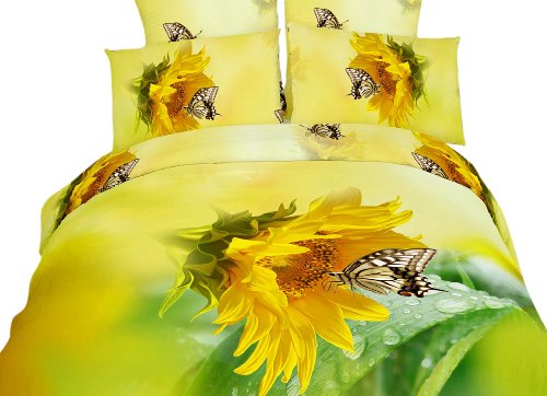 This spectacular butterfly themed bedding will create a fresh spring like look for your bedroom decor all year round. These superb Dolce Mela Duvet Cover Sets are crafted with State of the Art reactive printing panels and natural plant dyes on 100-percent Egyptian cotton. They feature exclusive centered Hi-RES designs that retain the vibrant colors for many years of proper washing. Decorate with style or treat a friend to a housewarming gift or a bridal shower. Designed for exceptional softness and comfort with 100-percent soft cotton at 305 tc set includes: 1 fitted bed sheet, 1 duvet cover, 2 pillow cases and 2 pillow shams. Sateen weaving produce a soft and lustrous look and eliminate typical wrinkling. Package content and sizes in-inch: 1 fitted sheet: 60 by 80 by 16 deep, 1 duvet cover: 92 by 92, 2 pillow cases 20 by 30, 2 pillow shams 20 by 30 + 2-inch flange.