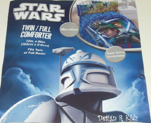 Pattern: Star Wars - Clone Wars. Genuine licensed merchandise. Machine washable. One twin size comforter 72 x 86 in. (183 cm x 218 cm). One twin flat bed sheet, finished size 66 x 96 inches (168 x 244 cm). One twin fitted sheet, each fit a standard twin mattress of 39 x 75 inches (99 x 191 cm). One standard Pillowcase, finished size 20 x 30 inches (51 x 76 cm) to fit 20 x 26 inches (51 x 66 cm) pillow.