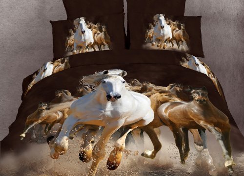Create a an Impressive horse themed bedroom with these gorgeous equestrian stallions printed with vivid colors and resolution and bring the countryside indoors. These superb Dolce Mela Duvet Cover Sets are crafted with State of the Art reactive printing panels and natural plant dyes on 100-percent Egyptian cotton. They feature exclusive centered Hi-RES designs that retain the vibrant colors for many years of proper washing. This luxury bedding set is a great choice for horse lovers bedding, dorm bedding, guest room bedding, or a great gift idea for a birthday or a housewarming gift. Designed for exceptional softness and comfort with 100-percent soft cotton at 305 tc set includes: 1 fitted bed sheet, 1 duvet cover, 2 pillow cases and 2 pillow shams. Sateen weaving produce a soft and lustrous look and eliminate typical wrinkling. Package content and sizes in-inch: 1 fitted sheet: 60 by 80 by 16 deep, 1 duvet cover: 92 by 92, 2 pillow cases 20 by 30, 2 pillow shams 20 by 30 + 2-inch flange.