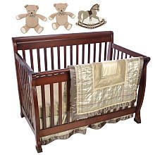 Provide a cozy, soothing nighttime environment for your little one with the FAO Schwarz Manhattan 7-Piece Crib Bedding Set. The satiny comforter is decorated in shades of brown and beige and accented with a stitched-on plaid pattern. The coordinating sheets, wall art and dust ruffle add beautiful finishing touches.