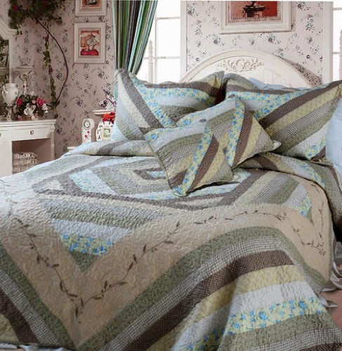 Decorate your bedroom with crinkled fabric with green-color patches border with the olive vines. The colorful multi square patchwork quilt harmonized with any room theme and color. Also it could be dry clean or machine wash warm, tumble dry gentle/ low or drip dry, and use mild detergent and no bleach.