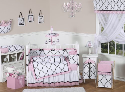 Pink, Black and White Princess Baby Girl Bedding 9pc Crib Set by Jojo Designs