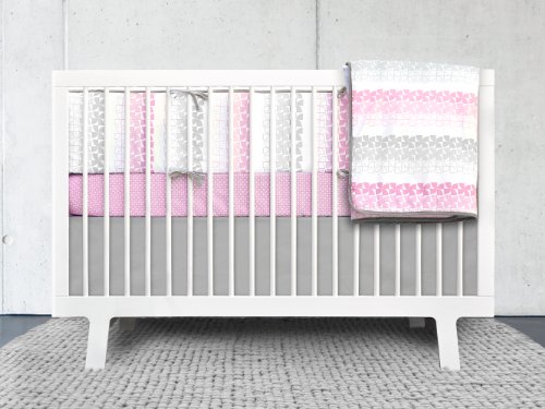 Olli & Lime logan 4 Piece Crib Bedding Set, Pink/White