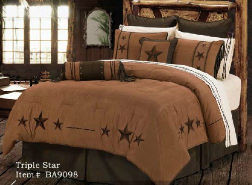 Luxurious and affordable . Designed for a Western, country, southwestern or mountain style bedroom. Create your own western retreat with soft bedding made from microfiber faux suede fabrics. The Bedding set includes comforter , bedskirt , 2 pillow shams (Twin size bedding has 1 sham), and decorative neckroll . Additional bedding and accessories are available and priced separately. Add an array of western accent pillows western shower curtains, western throw blankets and much more bedding . These are the ultimate western bedding sets!!! A room with the right bedding is warm, inviting, and loaded with down-home appeal. It makes for a great place in which to spend time with family and friends. And, when you want to have a little privacy, a bedroom with great bedding can become a welcome retreat from the demands and distractions of a busy day